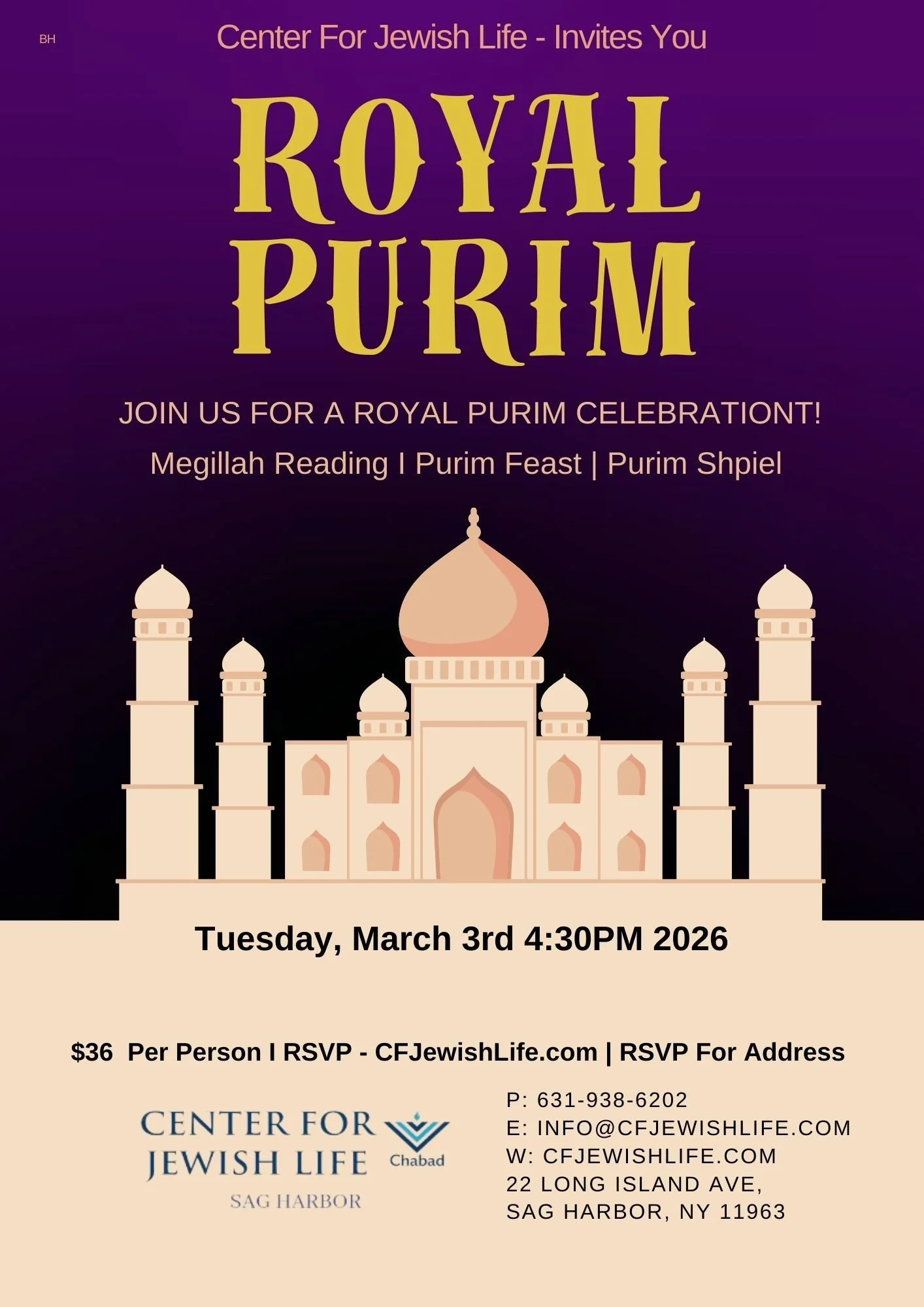 Center For Jewish Life - Sag Harbor invites you to the Royal Purim Feast!