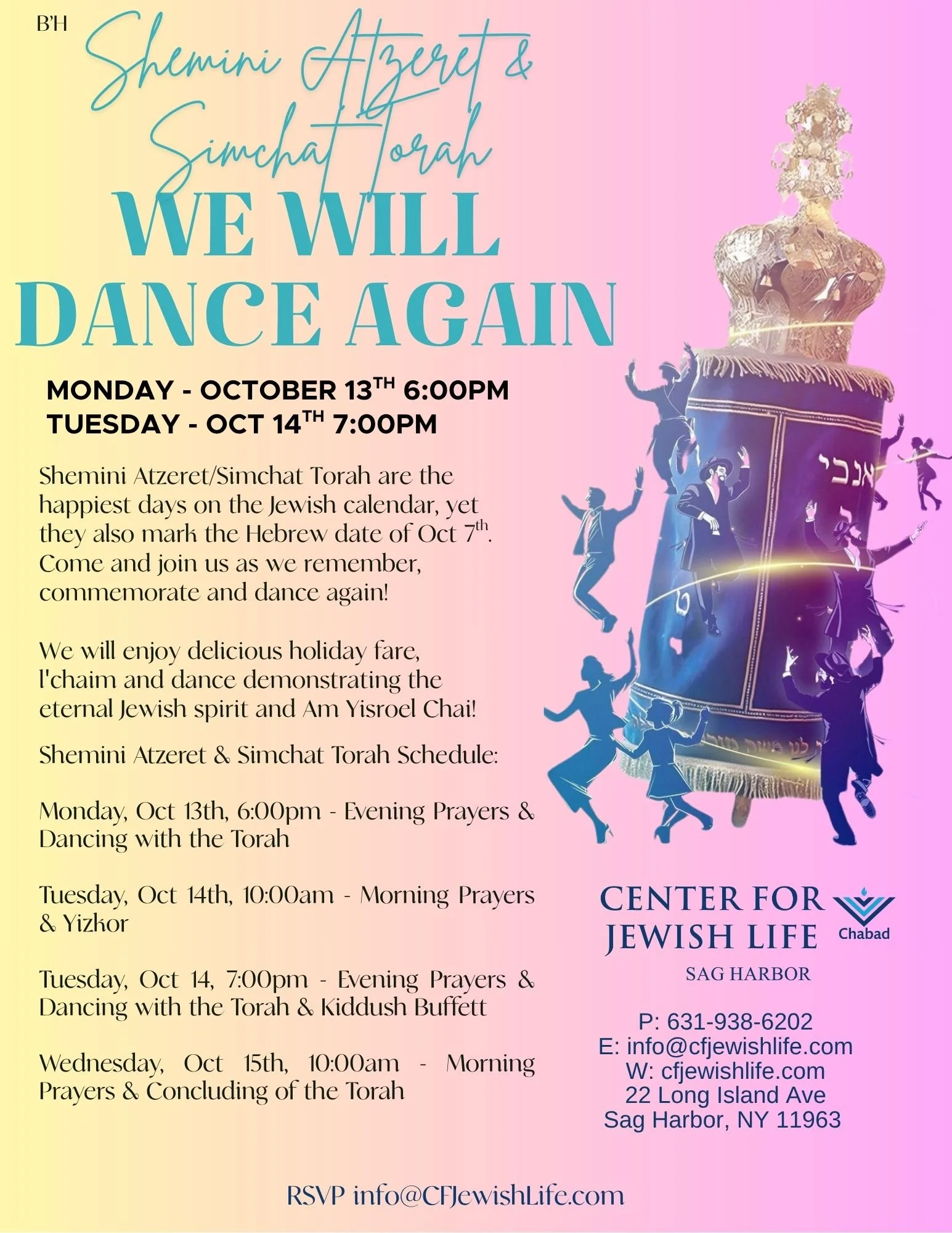 Tuesday, Oct 14, 7:00pm - Evening Prayers & Dancing with the Torah & Kiddush Buffett
